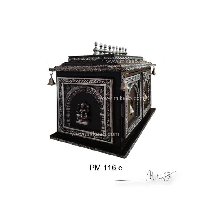 Introduce an aura of divine elegance into your home with our exquisite Traditional Pooja Altar, a resplendent tribute to ancient customs. Whether you refer to it as a Pooja Mandapam or Pooja Mandir, this meticulously crafted altar will elevate your spiritual practices to new heights. Its magnificent gold coating finish imparts a sense of opulence and grace, making it a captivating addition to your sacred space. Crafted with utmost precision, the Traditional Pooja Altar boasts a timeless design that reflects the grandeur of traditional Pooja Mandapams. Made from composite wood, this altar exudes durability, ensuring a long life span for your cherished spiritual haven. Not only is it resilient against water damage, but it also repels pests, ensuring that your sacred space remains unblemished. As we prioritize your preferences, we offer additional material options to cater to your needs and budget. Select from the finest country wood or the luxurious Teak wood, each exemplifying its unique beauty while enhancing the sanctity of your Pooja rituals. Our Traditional Pooja Altar is more than just a piece of furniture; it’s an emblem of reverence, a channel for spiritual connection, and an expression of your devout beliefs. Place it in your home, office, or any personal sanctuary, and witness how its presence elevates the ambience and inspires a deeper connection with the divine.