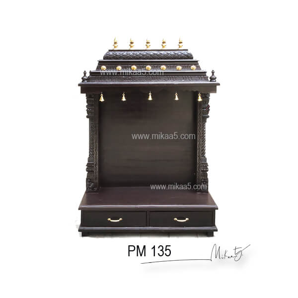 Having a Wooden Temple for home is a tradition followed by the Hindus for very many centuries. It is an ancient culture to have pooja mandirs or a dedicated pooja temple in every house to connect with the divine one. Indians are well known for their love for wood, carvings, engravings and craftsmanship and find it benevolent to offer that special space for the divine one. In the recent years people have come up ideas to have wall mounted temple in their homes to actually fit in the space they actually have. Some people love minimalistic designs on their mandirs and they opt for Pooja Mandir with bells and other embellishments.Whatever said and done, Mikaa5 with its expertise and experience for over two and half decades understands the thirst of their customers, in terms of their style, reverence and divine offering expectations. Our wooden temple for homes come in more than 100+ designs from minimalistic pooja mandirs, decorative pooja mandirs, traditional and contemporary ones. Bells and lamps have always been a part of the Pooja Mandirs. When it comes adding embellishments we understand customers needs, some like Pooja Mandirs with bells made out of ordinary metal casting but some love to have those bells made with copper, bronze and panchalokah material and also a material called as “Im pon” in Tamil.If you are looking for authentic, traditional and artistic style wooden pooja mandir for your home, then be sure you are dealing with the experts in the industry.